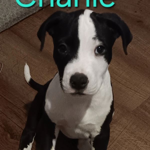 She is a funny little female who is spotted black and white, with one distinct black eyebrow that gives her a Charlie Chaplin look, hence the name Charlie. She loves to try and attack your socks if you're wearing them. She doesn't like the mop, so she does try to attack it, but I think it's because she is just trying to be a little hero. She has a healthy appetite, but